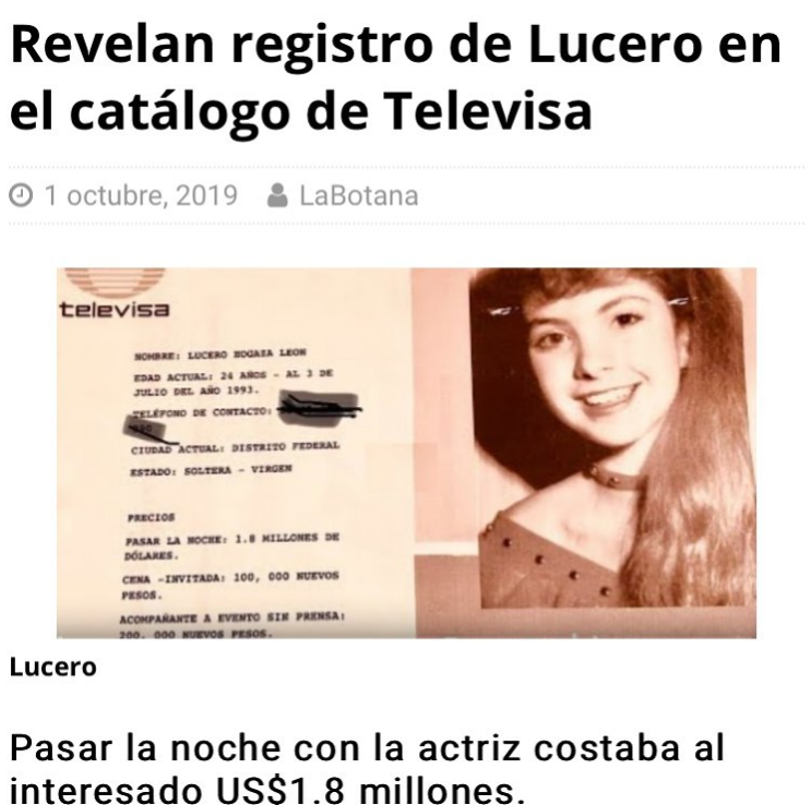 Hace unas semanas Jorge Carbajal, conductor del programa de YouTube ‘En Shock’ reveló que la actriz y cantante Lucero formaba parte del 'catálogo' de actrices de Televisa, que enseñaban a empresarios y políticos.