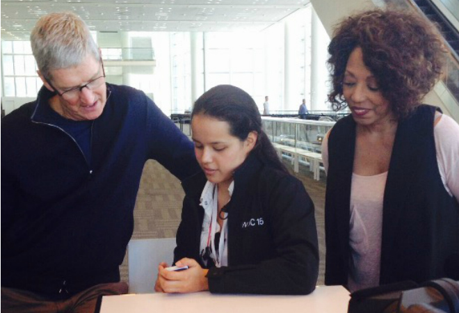 Congreso de Desarrolladores, donde conoció a Tim Cook, quien no ha dejado de apoyarla de ese día, a tal grado que Apple envió una carta de recomendación a la