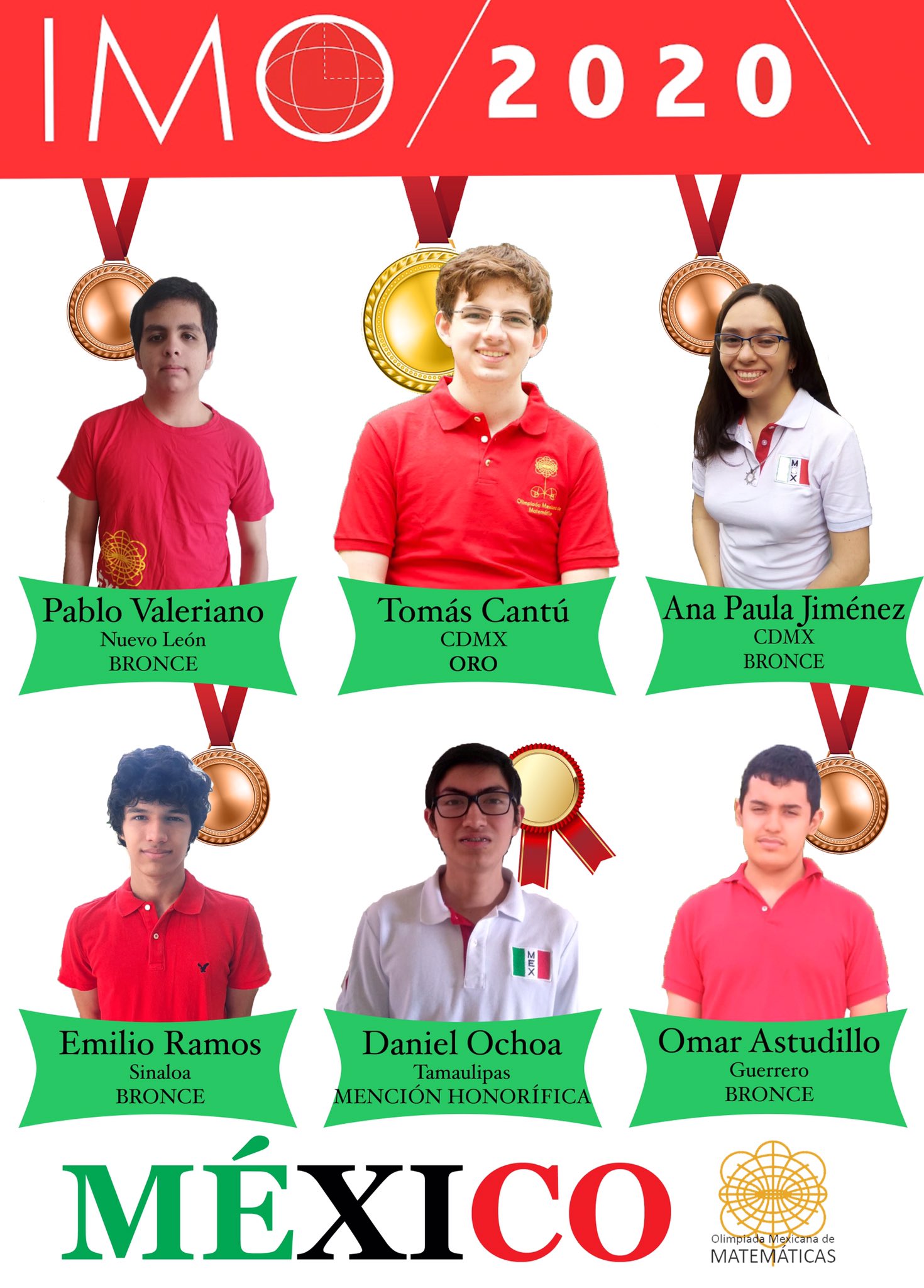 En total los mexicanos ganadores fueron: Tomás Cantú de CDMX, se llevó una medalla de oro; Daniel Ochoa de Tamaulipas, consiguió una mención honorífica; mientras que Pablo Valeriano, de Nuevo León; Omar Astudillo de Guerrero; Ana Paula Jiménez, de CDMX y Emilio Ramos, de Sinaloa, ganaron medallas de bronce.Felicitamos muy especialmente a Ana Paula Jiménez, de la CDMX, quien hizo historia al ser la primera mexicana en participar en dos Olimpiadas Internacionales de Matemáticas y obtener medallas en ambas ???? #SomosOlímpicas pic.twitter.com/OHsxdr7h2y
