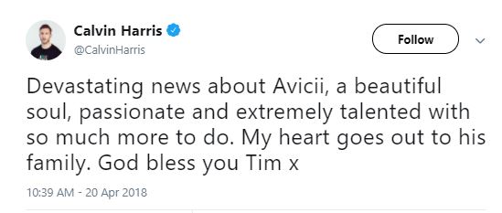 "Con profunda pena anunciamos la muerte de Tim Tim Berglund, también conocido como Avicii. Fue encontrado sin vida en Mascat, Oman, este viernes 20 de abril por la tarde. La familia está devastada y piden a todos que por favor se respete su privacidad en esta época difícil. No se harán más declaraciones".