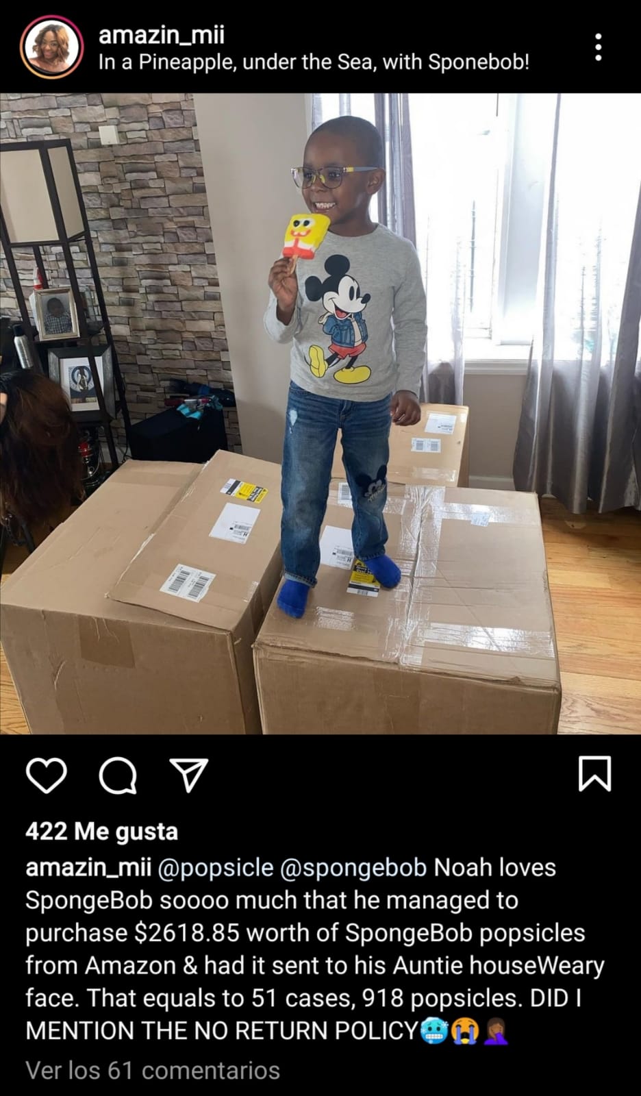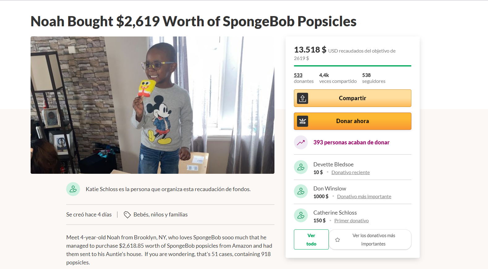 Noah Bryant, un niño de 4 años originario de Brooklyn, Nueva York, tomó prestada la tarjeta de crédito de su mamá y gastó 2 mil 618 dólares (alrededor de 52 mil pesos) en paletas heladas de Bob Esponja.