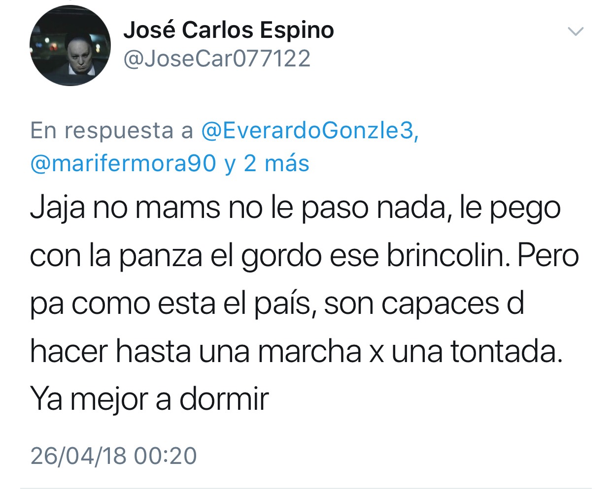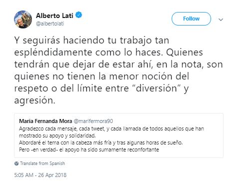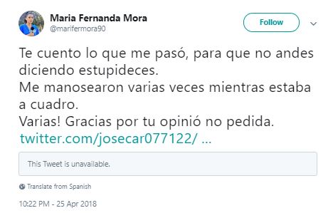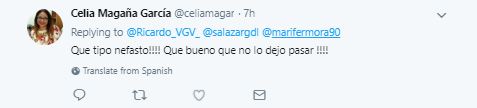 Horas después, la conductora habló sobre el suceso y respondió a este comentario en Twitter (que el autor eliminó posteriormente):