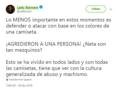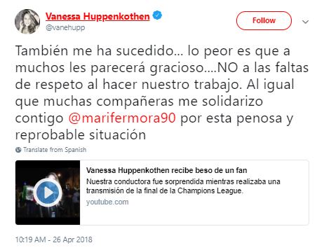 Uno de los fanáticos tocó a la conductora, quien alzó la voz para enfrentar a su agresor y exigirle que no la tocara: