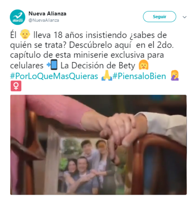 El partido Nueva Alianza publicó el segundo capítulo de su miniserie “La decisión de Bety” con la que se opone a la ‘relación’ de Andrés y Bety…