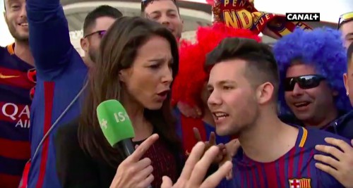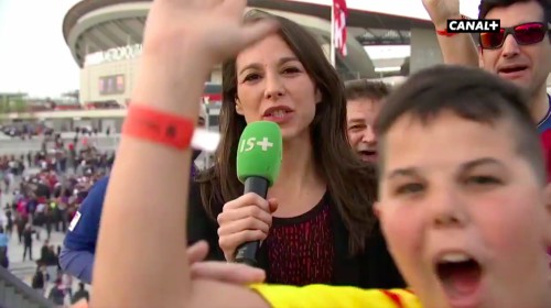 La periodista francesa se encontraba en una transmisión durante el partido de la Copa del Rey, algunos fans se acercaron y todo normal. Sin embargo, lo primero que le molestó fue que un grupo de fans la comenzaran a empujar.