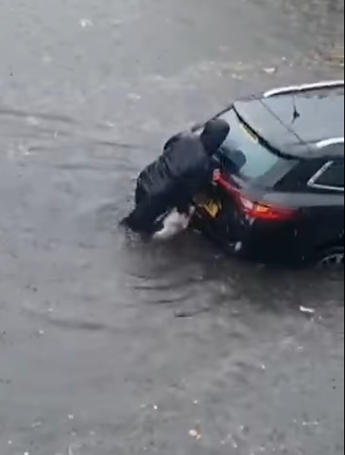 En días pasados Glasgow, una ciudad de Escocia, padeció por fuertes inundaciones y varios conductores se quedaron varados en la calle.
