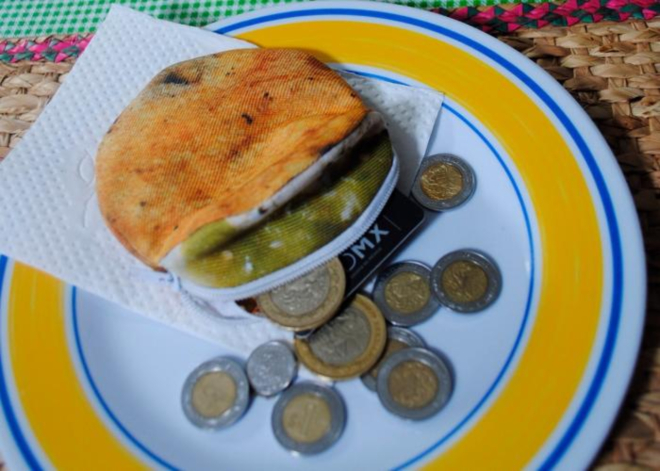 página oficial de PLOP. Los precios van desde los 250 pesos para la cartera de quesadilla, el monedero de gordita cuesta 95 pesos y la funda de tamal 200 pesos.