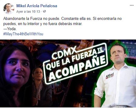 Pero en la CDMX no se quedaron atrás y el aspirante a la jefatura de Gobierno, Mikel Arriola compartió esta imagen en su Facebook: