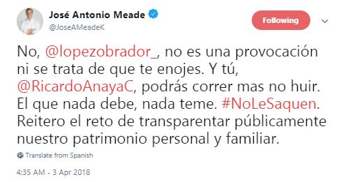 En los últimos días, José Antonio Meade ha insistido en debatir con Ricardo Anaya y Andrés Manuel López Obrador sobre su situación patrimonial.