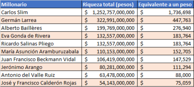 Cuando haces el mismo cálculo con otros millonarios mexicanos obtienes estos resultados.