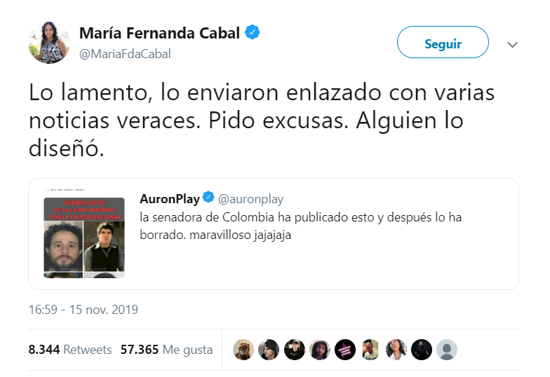 A la senadora no le quedó de otra que aceptar su error y pedir disculpas a los jóvenes, asegurando que le enviaron la foto junto a noticias veraces.la senadora de Colombia ha publicado esto y después lo ha borrado. maravilloso jajajaja pic.twitter.com/ePrIbhwKgG