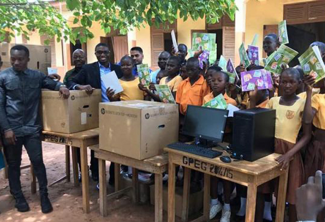 La compañía prometió que le daría a Akoto un dispositivo electrónico, acceso al programa Microsoft Certified Educator y acceso gratuito a recursos para su desarrollo profesional.