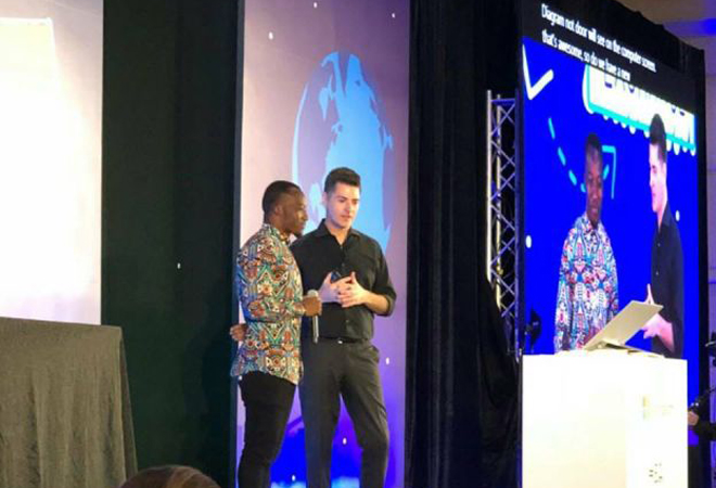 La empresa también lo llevó a Singapur para unirse al evento anual Microsoft Education Exchange. "Estoy ansioso por aprender algo nuevo", publicó al llegar al lugar en su perfil de Facebook, en el que aparece con el nombre Owura Kwadwo Hottish.