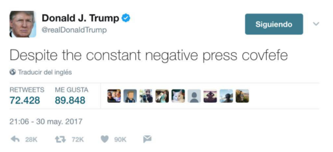 Con una palabra inexistente, y aparentemente incompleto, este fue el tweet de Donald Trump, que causó furor en las redes sociales.