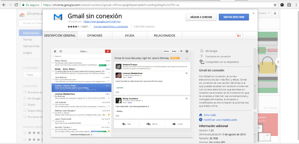 Gmail Offline mientras estés conectado para que se sincronicen tus emails a tu disco duro.