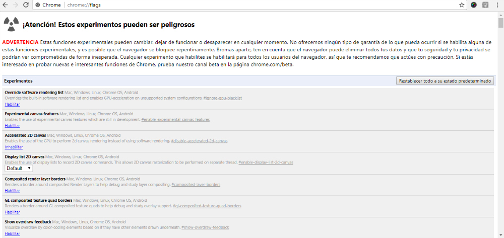 Para el caso de Chrome, puedes acceder a esta opción en el panel de opciones experimentales, escribe en la barra de direcciones