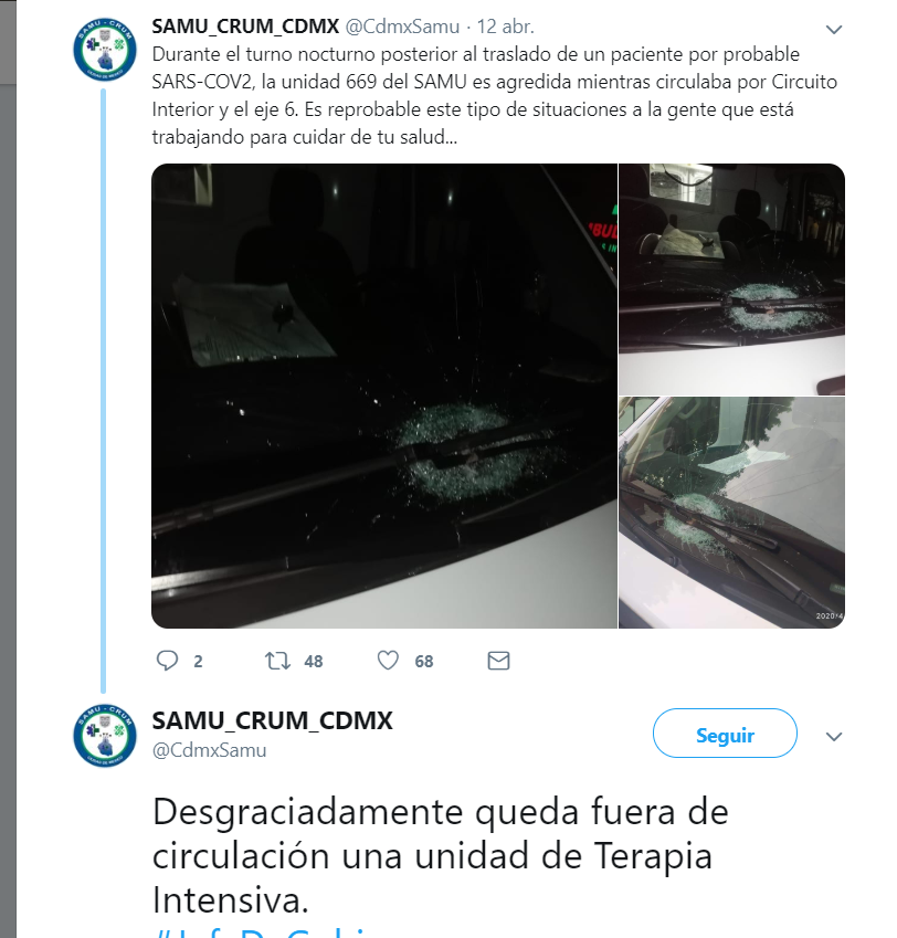 En la madrugada del pasado domingo 12 de abril, habitantes de la alcaldía Iztapalapa lanzaron objetos a una ambulancia que trasladaba a un paciente con síntomas de COVID-19.