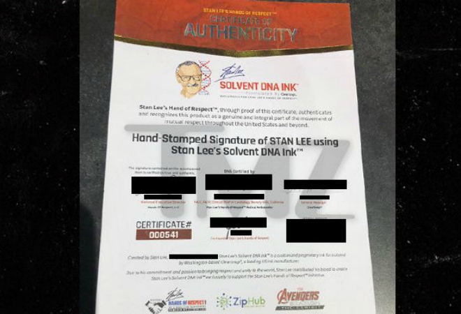 ‘firma hecha a mano con el ADN de Stan Lee disuelto en tinta’, según reportes de TMZ.