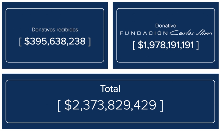 La campaña de Slim consistía en que por cada peso que la gente donara, la fundación donaría cinco más, de esta manera el empresario reportó la cantidad final de 2,373 millones 829 mil 429 pesos que se destinarán a las labores de reconstrucción de las entidades afectadas tras los sismos del 7 y 19 de septiembre.