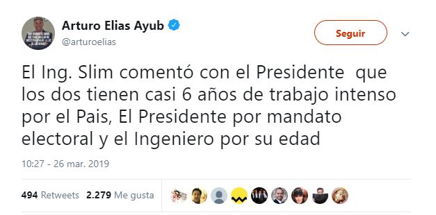 Al respecto, Arturo Elías Ayub, yerno de Slim, señaló que el empresario sólo le dijo a AMLO que ambos debían trabajar intensamente por el país.
