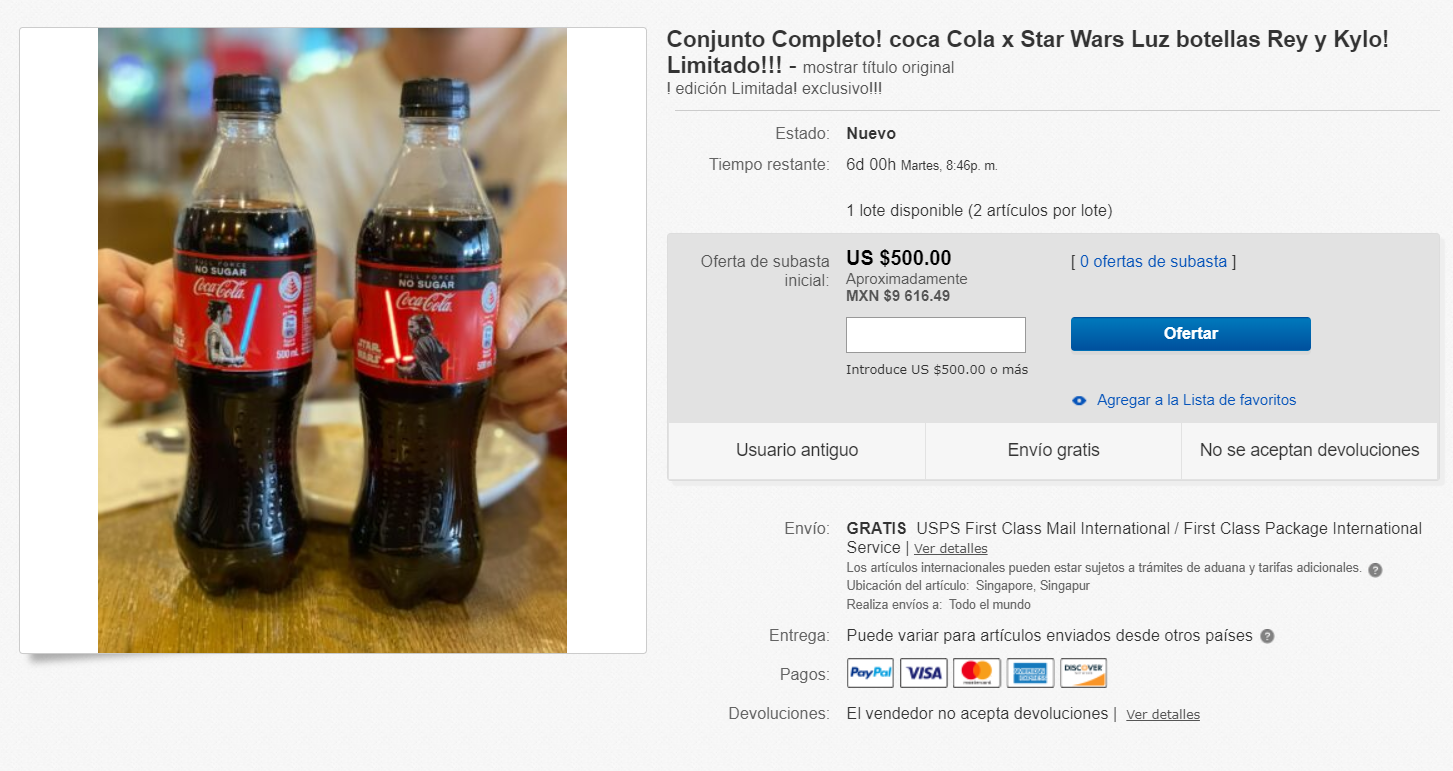 Se espera que Disney y Coca Cola lancen en otros países diferentes ediciones especiales con motivo del final de Star Wars.