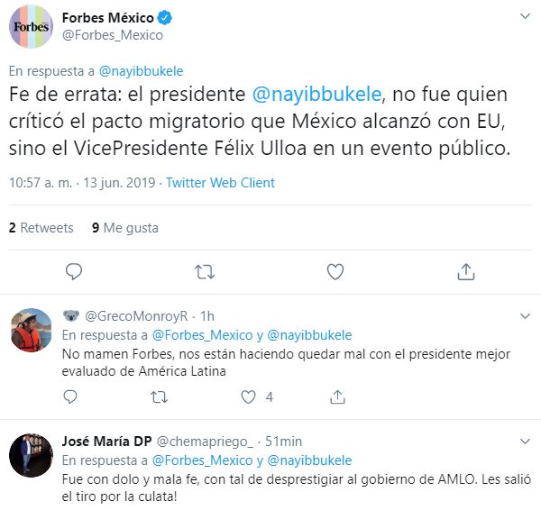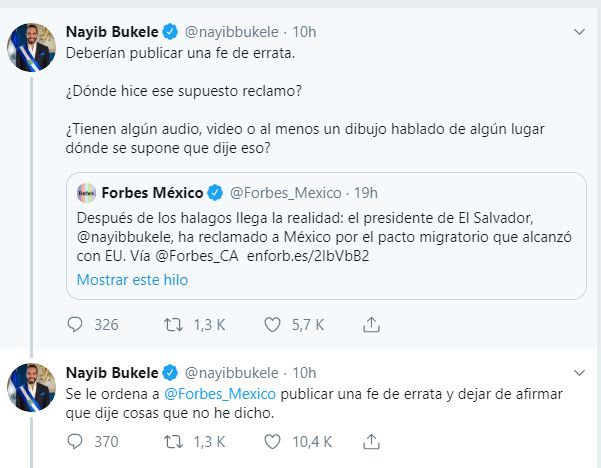 Forbes cometió una grave equivocación y difundió que el presidente de El Salvador, Nayib Bukele, había dejado atrás el discurso amigable con su homólogo mexicano, Andrés Manuel López Obrador, para reclamarle por el pacto migratorio.