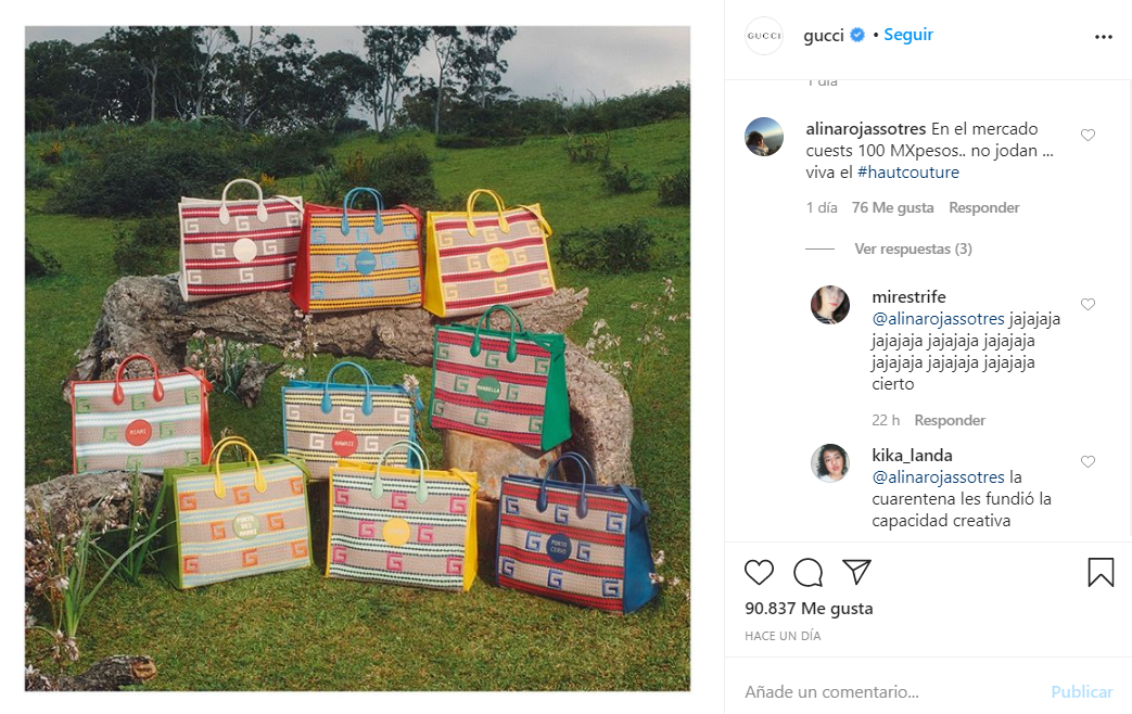 "En el mercado cuesta 100 MXpesos... no jodan ... viva el #hautcouture", comentó una usuaria en la publicación de Gucci.