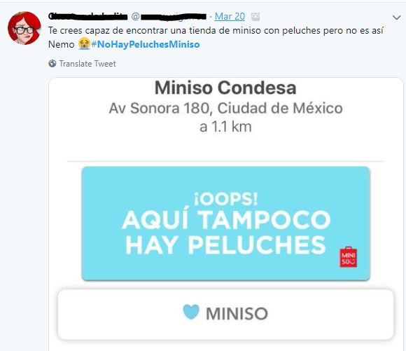 En pocas horas Miniso se convirtió en tendencia en Twitter, bajo el hashtag #NoHayPeluchesMiniso, donde los clientes manifestaban su preocupación por la escasez del producto.
