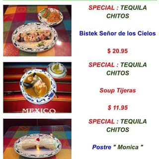 Entre sus especialidades están: Bistec Señor de los Cielos, que lleva camarones; Sopa Tijeras y el postre Dulce Mónica.