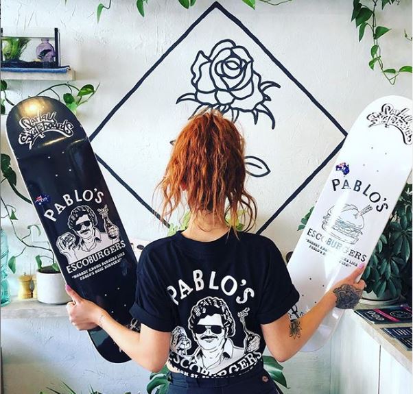 En Melbourne, Australia, existe un restaurante de hamburguesas llamado Pablo´s Ecoburguers, inspirado en el narco colombiano.