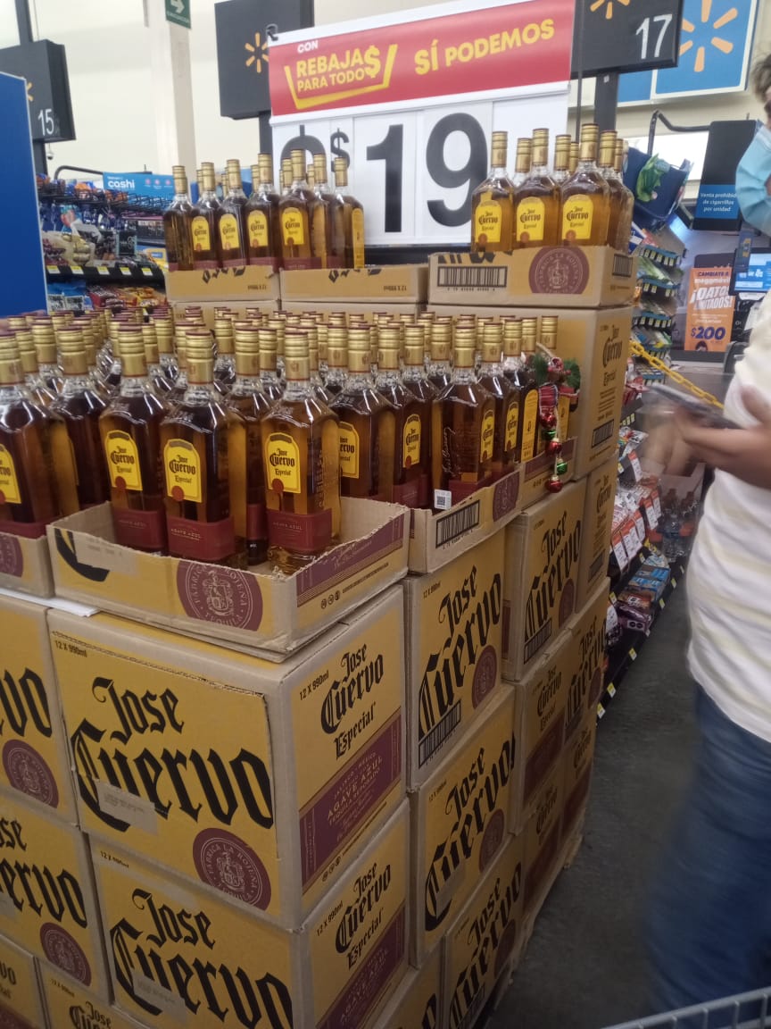 TE PUEDE INTERESAR: Cliente aprovecha error de Soriana y se lleva 2 mil botellas de whisky#Viral | ¡Qué ofertón! ?? En Walmart de Macroplaza Estadio, trabajadores se equivocaron en el precio del tequila José Cuervo Especial, de 990 mililitros y lo pusieron a solo $19.00 pesos; usuarios exigen que el supermercado cumpla con el precio etiquetado. pic.twitter.com/HJ2syiN1ZL