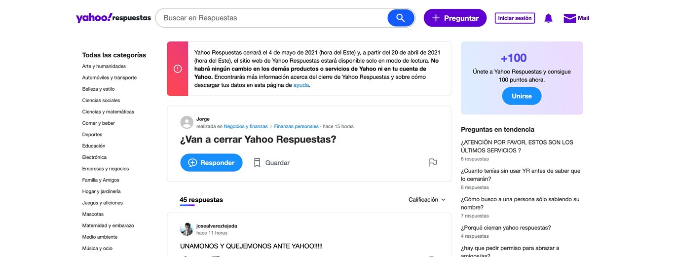 El cierre de Yahoo Respuestas será paulatino, pues a partir del próximo 20 de abril, los usuarios ya no podrán realizar nuevas preguntas.