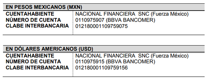 El fideicomiso se llama "Fuerza México" y a través de él canalizarán los donativos y aportaciones de las compañías dentro y fuera del país, se constituyó a través de Nacional Financiera (Nafin) y su comité directivo se encargará de "garantizar su transparencia y adecuada aplicación", señaló en un comunicado el CCE.