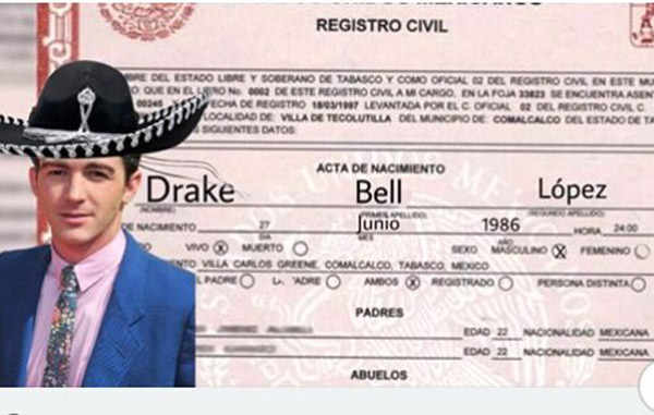 Así sería la acta de nacimiento de Drake si fuera mexicano.