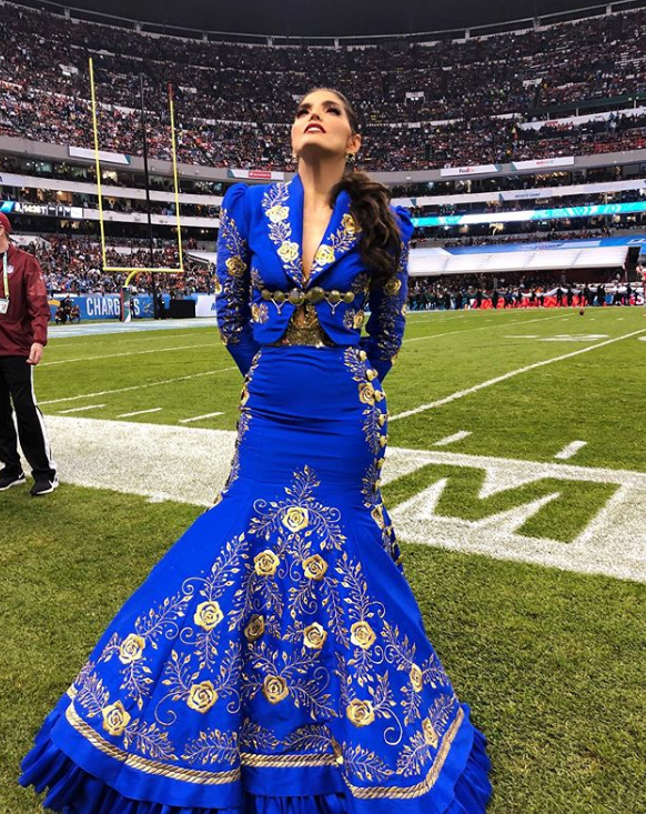 La cantante de música grupera, Ana Bárbara, fue elegida para entonar el Himno Nacional de México en el partido de la NFL entre los Chiefs de Kansas City y los Chargers de Los Ángeles que se realizó en el Estadio Azteca.