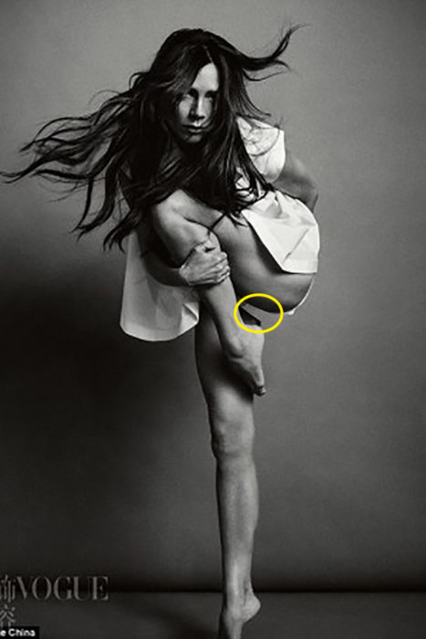 La fotografía de una sesión que hizo Victoria Beckham para Vogue China estaba tan editada, que incluso tenía un hueco en la pierna.