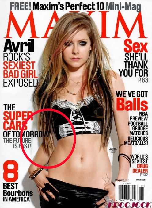En la portada de Maxim la cantante Avril Lavigne apareció con más de la mitad del brazo recortado.