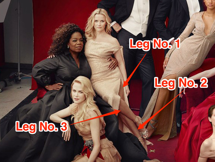 En la misma edición de Vanity Fair, la actriz Reese Witherspoon aparece con tres piernas.