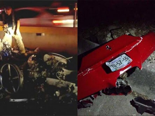 Según reportes de Protección Civil, el Ferrari 458 Spider venía de Acapulco a exceso de velocidad cuando chocó contra un muro de contención y un autobús de pasajeros, posteriormente se incendió y quedó reducido a cenizas.