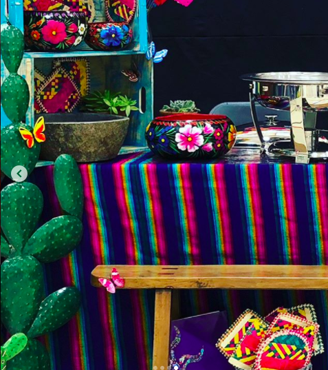 Para que se sintiera el espíritu cien por ciento mexicano, Salma decidió preparar sopes, hacer figuras con papel crepé, colocar rebozos como manteles, y hasta vajillas coloridas.
