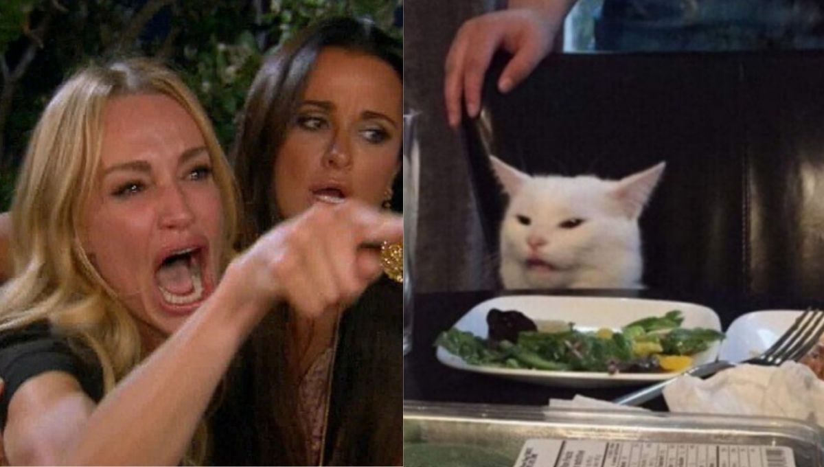 La imagen de la mujer discutiendo con un gato sentado en la mesa se ha convertido en uno de los memes más famosos en la historia del internet.