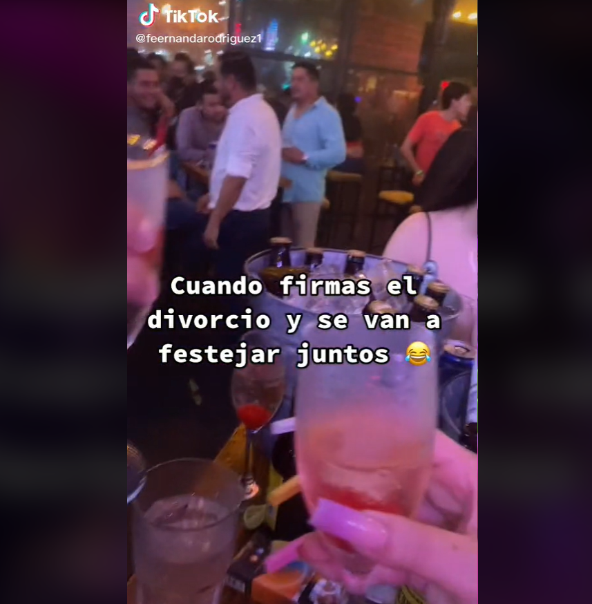 A través de su cuenta de TikTok, la usuaria @feernandarodriguez1 compartió un video brindando por su divorcio con su expareja en un bar.