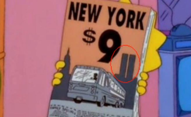 En 1997 también predijeron la caída de las Torres Gemelas, en el episodio "La ciudad de Nueva York vs Homero Simpson" aparece un folleto con un 9 gigante y de fondo las torres que forman un 11, 9-11 fue la fecha de la tragedia.