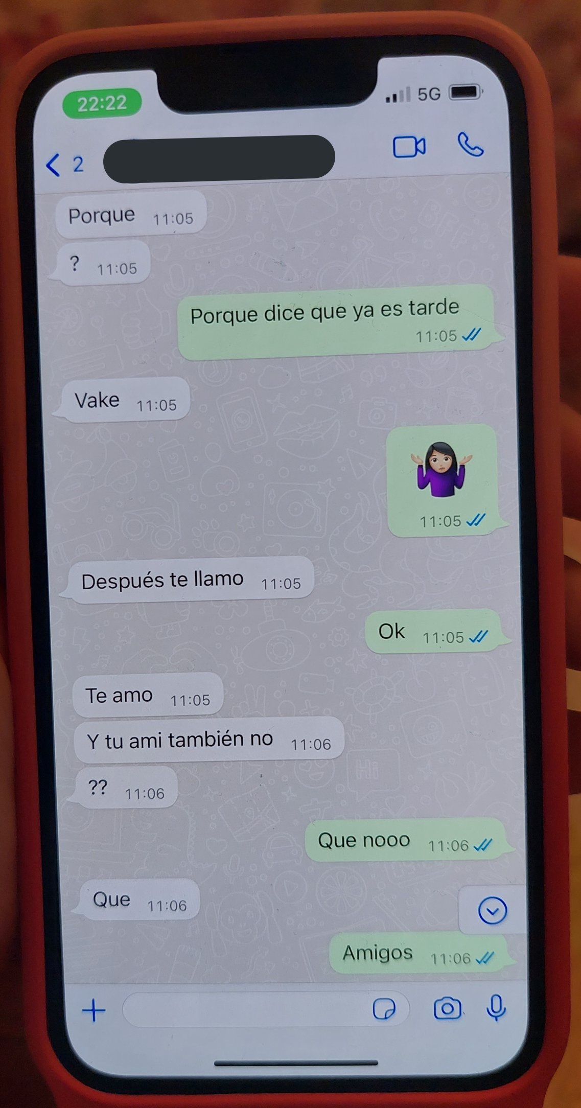 La conversación pasa por varias fases, emoción, drama, tristeza, negación, pero todo termina en un hablamos en el colegio, en lo que seguro fue una agitada conversación entre un niño de 9 años enamorado de su amiga.