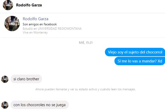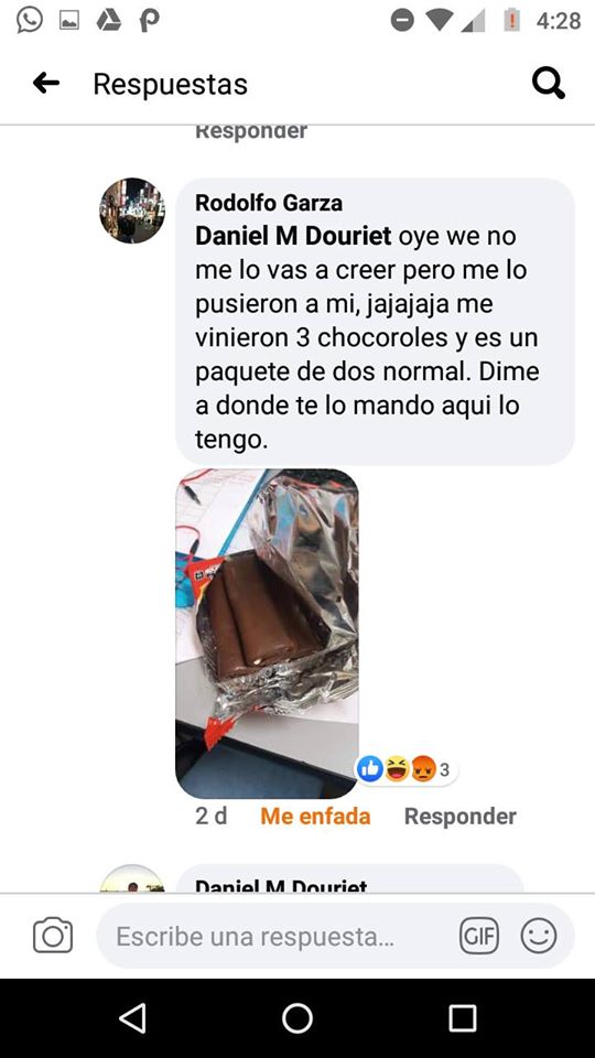 Fue otro usuario identificado como Rodolfo Garza, quien vio el comentario de Daniel en Facebook y decidió contactarlo, pues su paquete traía tres chocorroles.