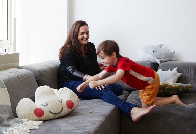 Tina Roth Eisenberg y uno de sus hijos (imagen vía Vitra)