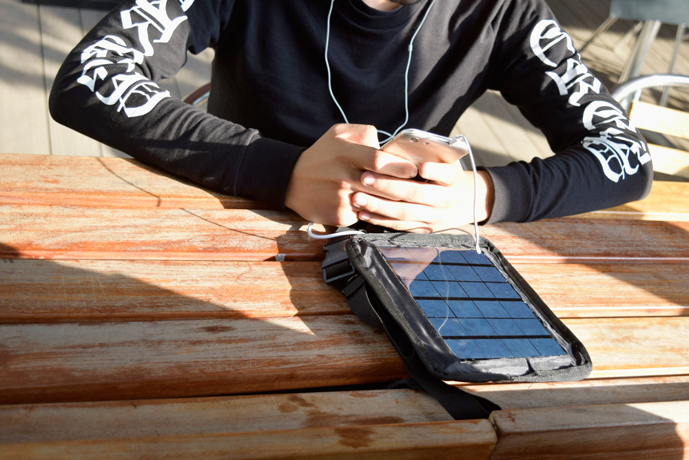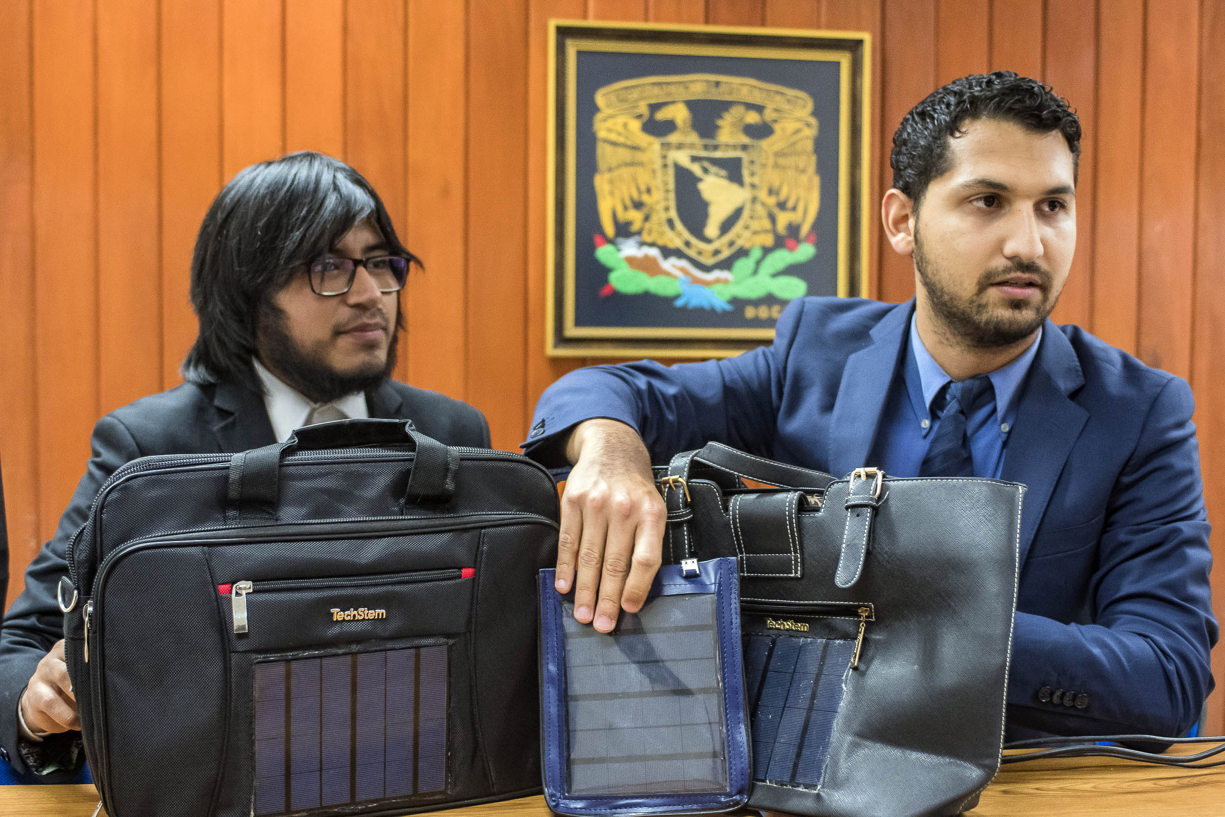 Alejandro Crespo y Miguel Ángel González, estudiantes egresados de la carrera de Ingeniería de la Universidad Nacional Autónoma de México (UNAM), desarrollaron bolsas y portafolios que tienen integrados paneles solares para cargar dispositivos móviles.