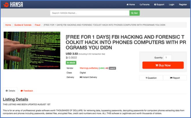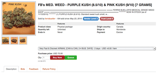 Una de las ofertas enlistadas en el sitio AlphaBay