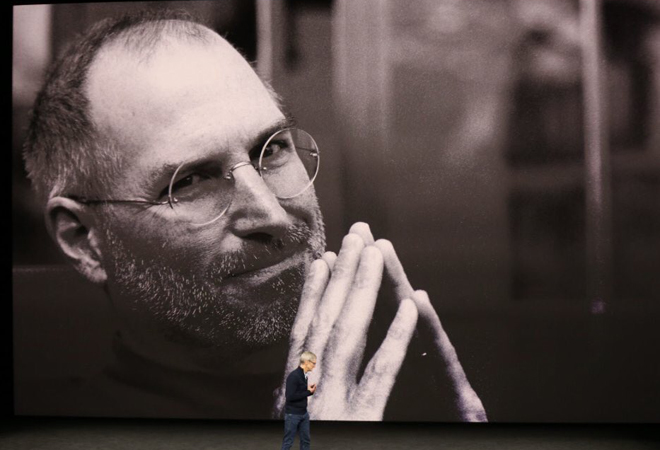 12:01 Apple da la bienvenida con las palabras de su fallecido cofundador, Steve Jobs.