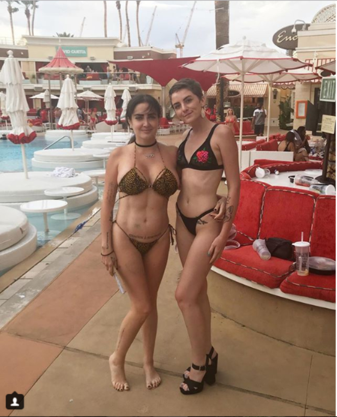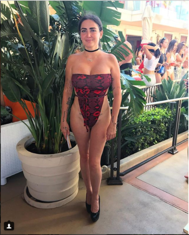 Y como allá también hace calorsss la curvilínea mujer no desaprovechó la oportunidad para pasearse en ajustado traje de baño, que dejaba ver algunos de sus más íntimos tatuajes.